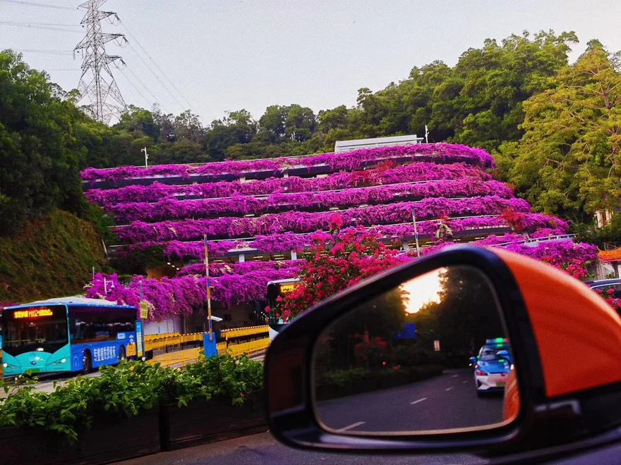 最美的风景永远在路上。行驶中,后视镜里偶然框下的画面让人心动🌸。