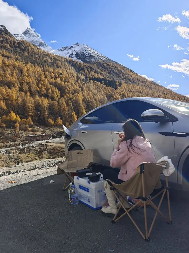 🚗在西昌邛海边,我们静静地看着日落。把座椅放倒,透过一整片天幕,天空从湛蓝变成橙红再变成紫粉。你播放着我最爱的歌单,电量充足,内心无比平静。你给了我一整个移动的“观景平台”,和一份逃离喧嚣的底气。