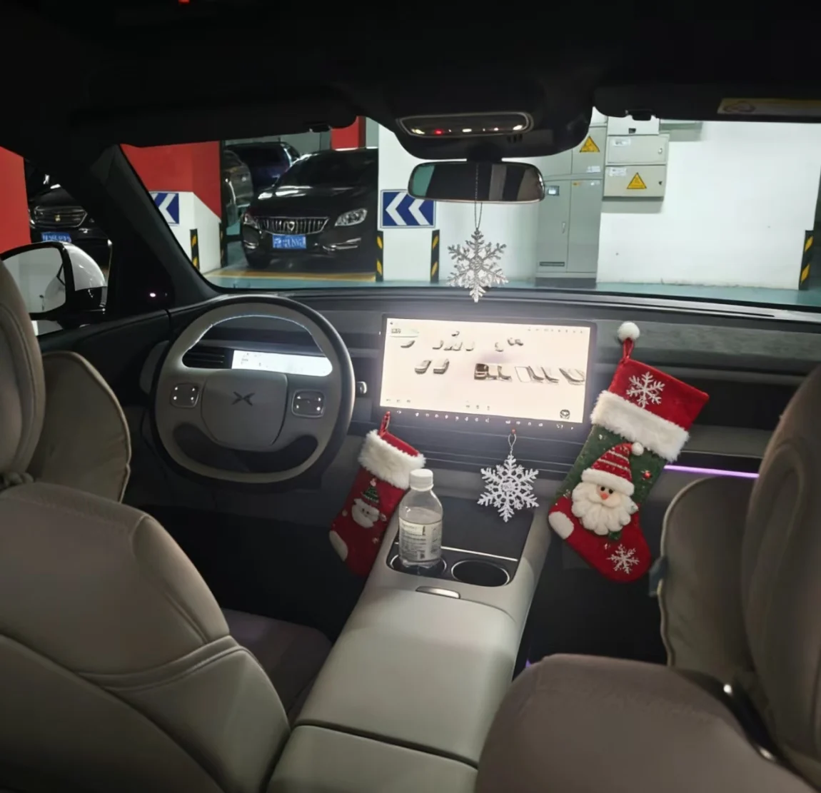 🚗本来就超爱G6的浅米色内饰,简约又温柔,想着加点圣诞装饰应该会很搭,就入手了些小挂件、圣诞袜和雪花贴,全程自己动手布置,难度几乎为零。东西都是从拼多多上买的,反正也很便宜,自己动手很方便。