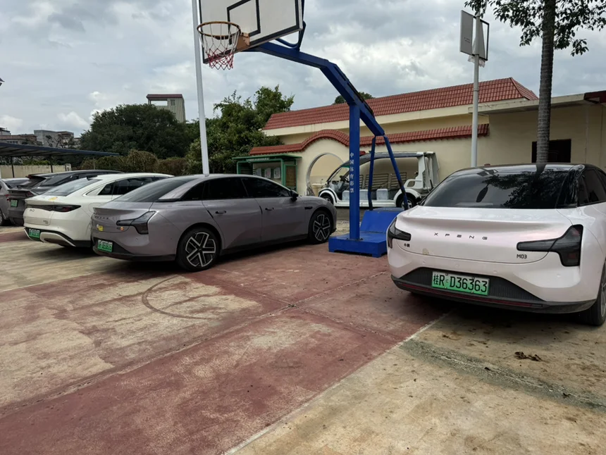 出发去单位的路上,看着停车场里静静等着我的小鹏mona M03,和旁边的车比起来,它的线条利落又灵动,颜值和实用性双在线。