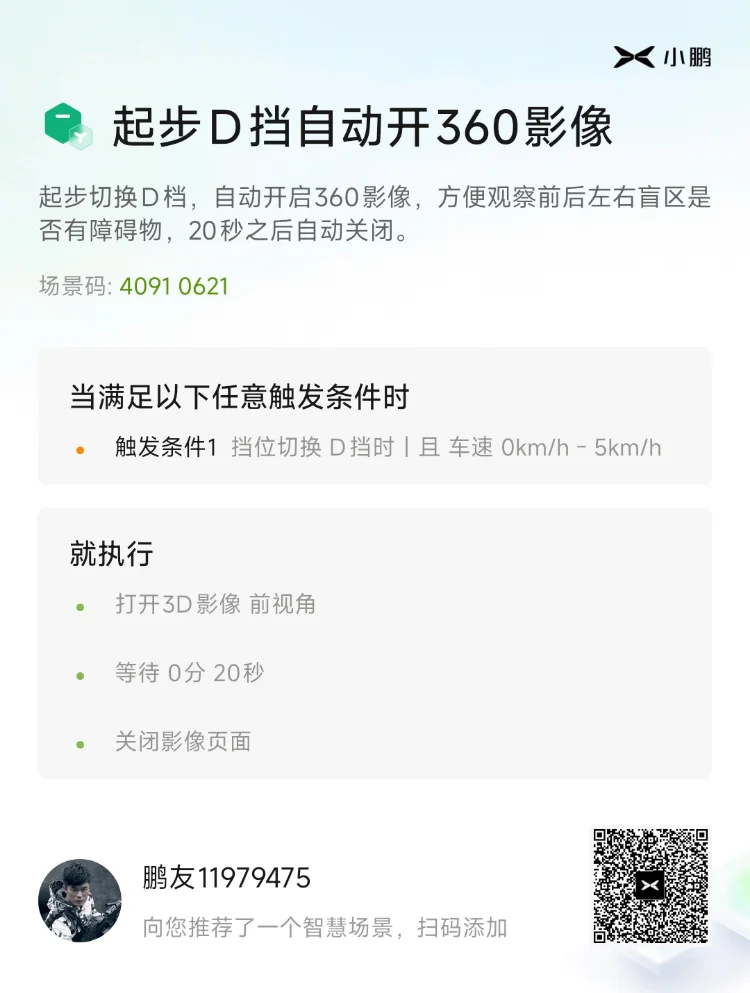 +++小鹏的智慧场景,让我可以自定义挂入各个档位的提示音,比如我设置了🚎挂入D档提示“够够够出发喽”/“已切换到前进挡”随机切换,🚎挂入P档提示“已挂P档”/“已驻车”/“已切换到P档”随机切换,🚎挂入R档提示“倒车请注意倒车请注意”/“已挂倒车”/“已切换到R档”随机切换,🚎挂入N档提示“请注意已切换到N挡了”,让我的车切换档位的时候个性十足。(我的朋友们每次坐我的车都直呼这个功能好棒,下辆车他们也要买小鹏,哈哈)