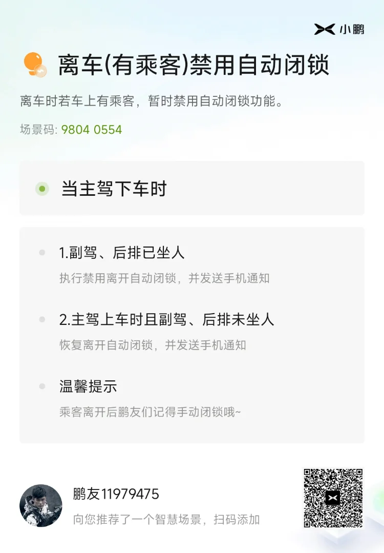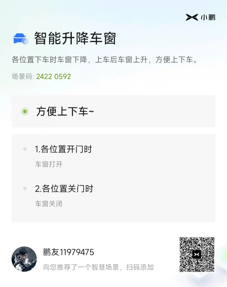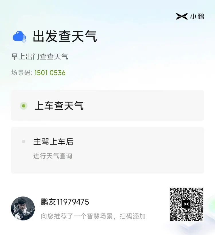 小鹏G6的【智慧场景】,生动地诠释了什么叫智能,我认为是电车zuizuizui好用的功能💋。设置也很方便,如果不会设置,直接在智慧场景页面搜索其他鹏友设置好的,按场景码就可以添加💋。相比油车的很多功能无法打开或者打开很繁琐,小鹏的智慧场景,可以自定义很多想要的效果,简直让这辆车有了灵魂一般😋。比如我最喜欢的几个智慧场景: