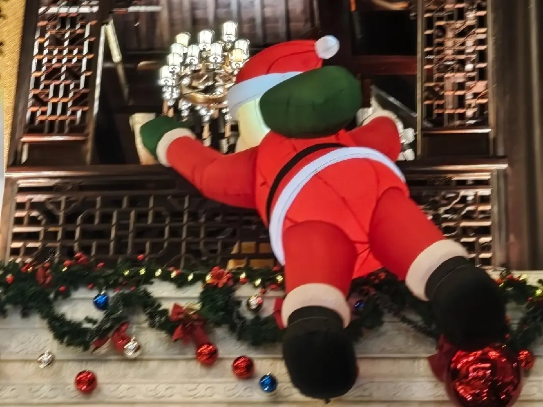开着小G去出差珠海,在一个酒店大堂拍到一个中西合璧的圣诞老人爬楼造型,很特别。