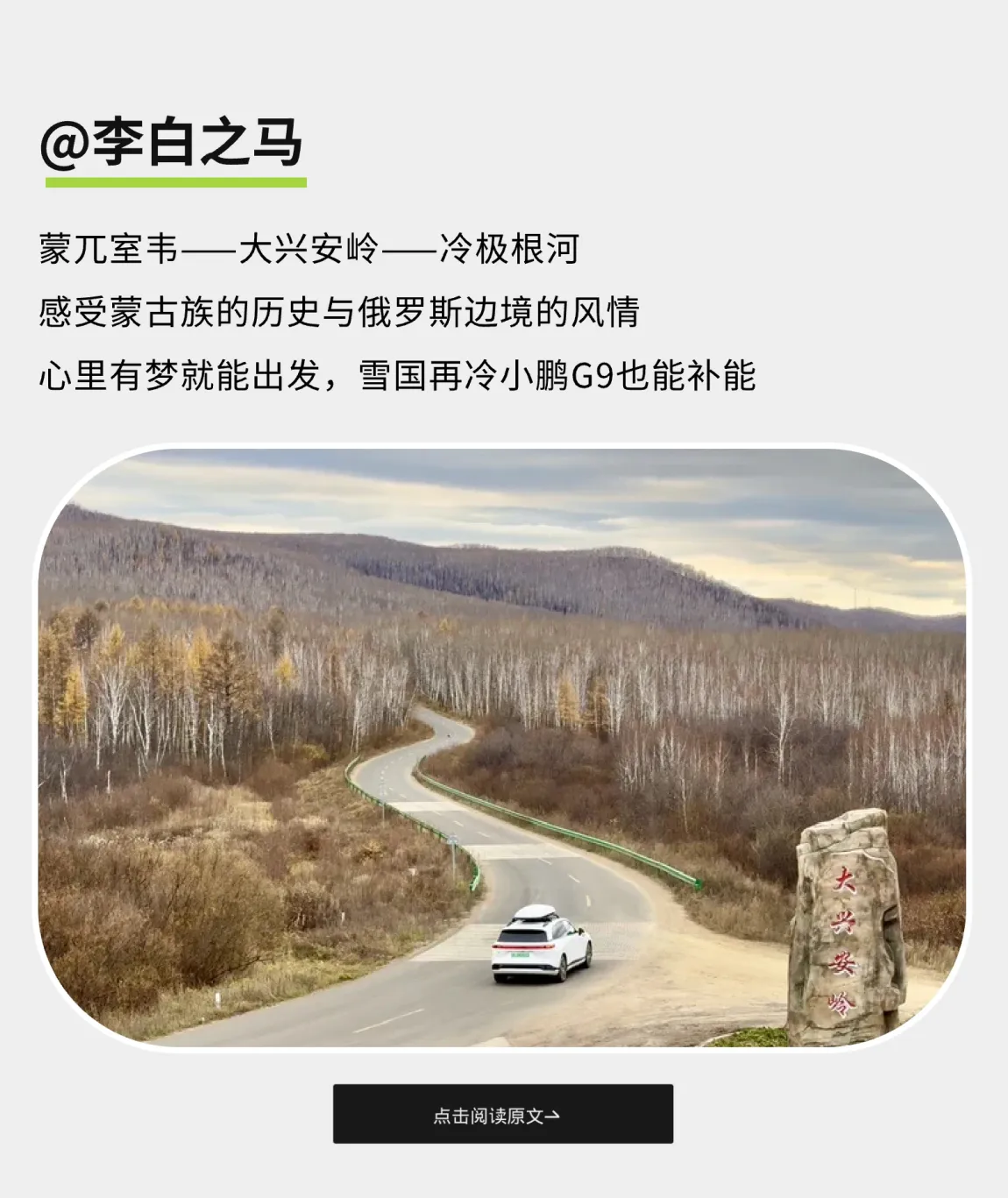 这个冬季小鹏带你穿过了林海雪原、高山湖泊