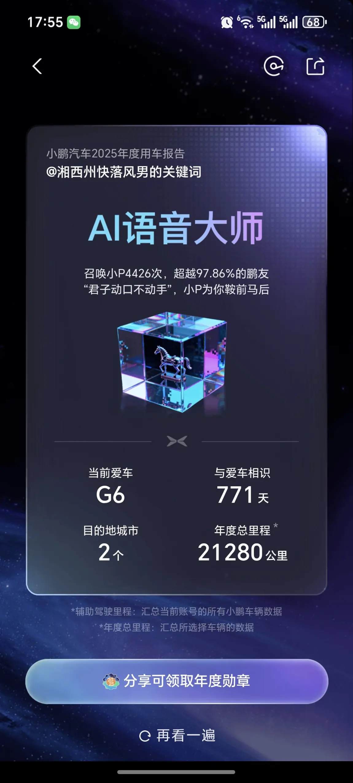 与小鹏G6共度的2025已经存档!2万+公里藏着通勤的朝暮、自驾的山海。XNGP让长途不累,小P懂我所需,超充站的片刻停留就能满电出发。新岁启封,站在2026年的起点, 期待车轮碾过更多崭新的风景, 心中满是对未来的滚烫期许。
