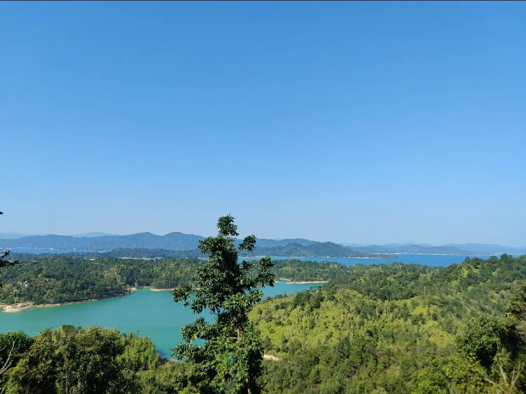 湖水风光是针不戳,湖水碧绿,天空湛蓝