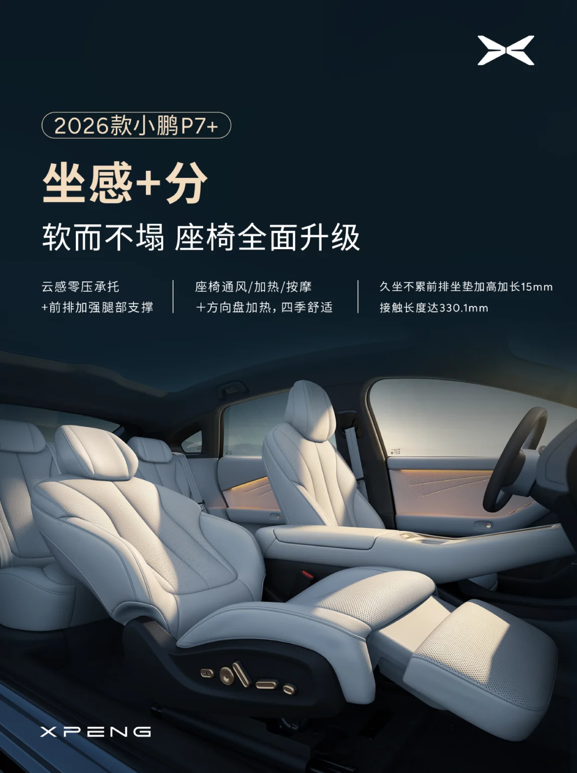云感零压承托+前排加强腿部支撑+坐垫升级,久坐不累。