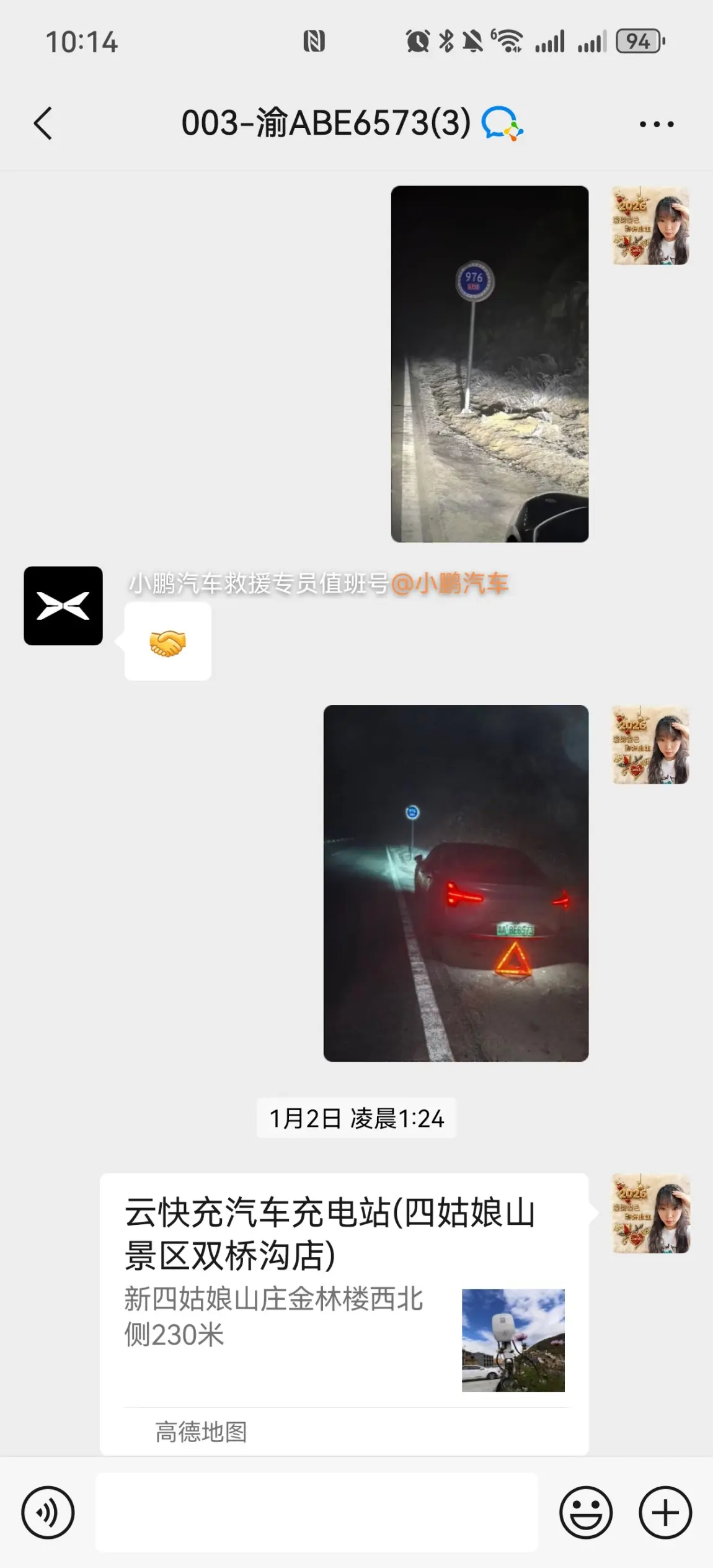 当发现车子的电量无法撑到下一个充电桩且附近零下8℃时,心里慌得很,主要又是凌晨,堪称绝望,但小鹏的App超赞,有客服,有24小时救援,同时还免费,更值得夸赞的是,响应速度非常即使,工作人员也很耐心,也会安抚车主的情绪!安排的救援也比较合理,因为我们是凌晨,非常冷,同时又是在四姑家山的半路,救援没那么刚好,所以第二天一早八点前,救援师傅就联系我了,我个人觉得,这个是我非常满意的一个点,第二天,我带着家人直接去了景区,救援师傅把车送到充电站,帮我把电充上,还贴心的给我发了位置以及充电站对应的联系方式,整个过程的服务,我非常满意,👍👍👍👍👍👍👍👍👍👍👍