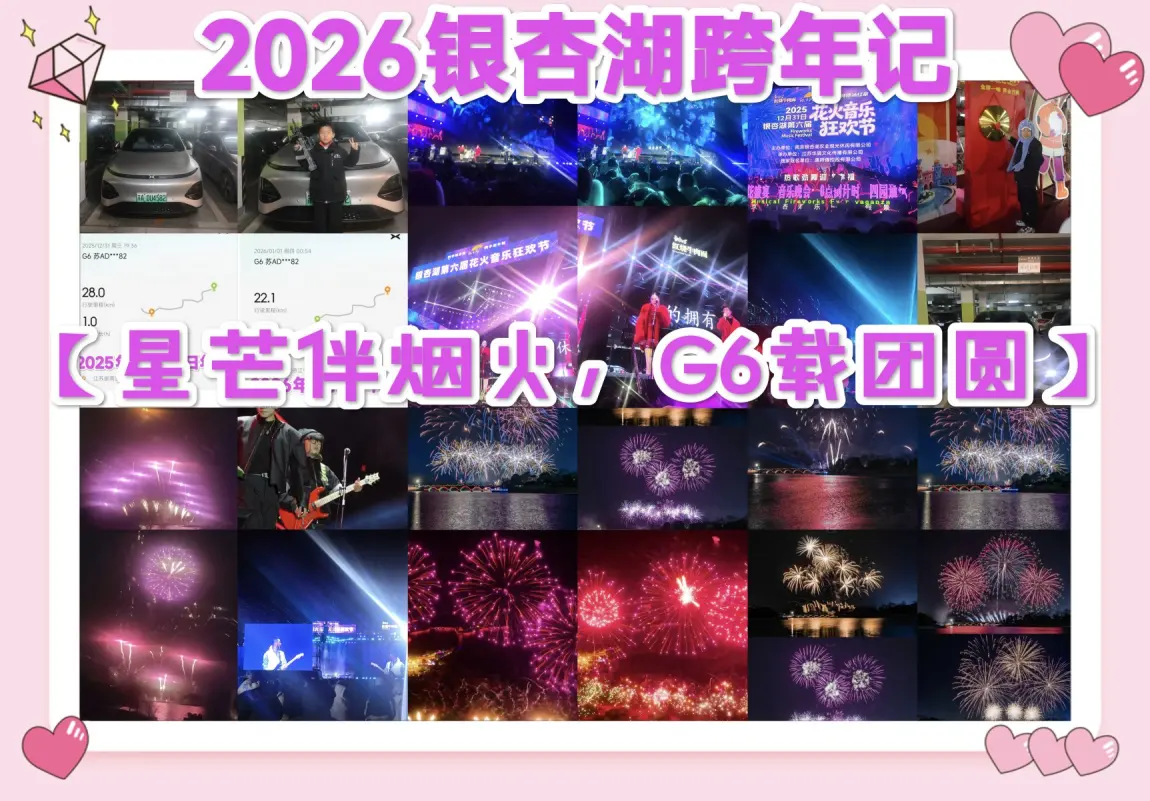 2026年的第一缕晨光即将破晓,这场跨越新旧之年的旅行,不仅有银杏湖的烟火浪漫、群星演唱会,更有小鹏G6带来的舒适与安心。它用越级空间承载家庭欢笑,用智能科技简化出行琐碎,让每一段旅程都成为值得珍藏的回忆。新的一年愿与G6相伴解锁更多人间美好场景。@鹏友大管家 @社区活动小姐姐 @小鹏友