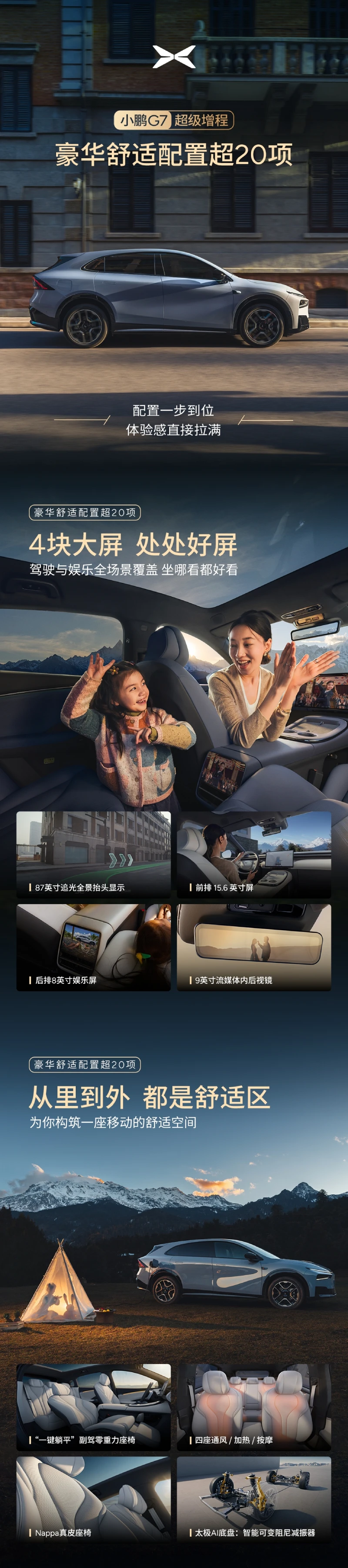 小鹏G7超级增程,超20项豪华舒适配置,驾乘体验直接拉满。