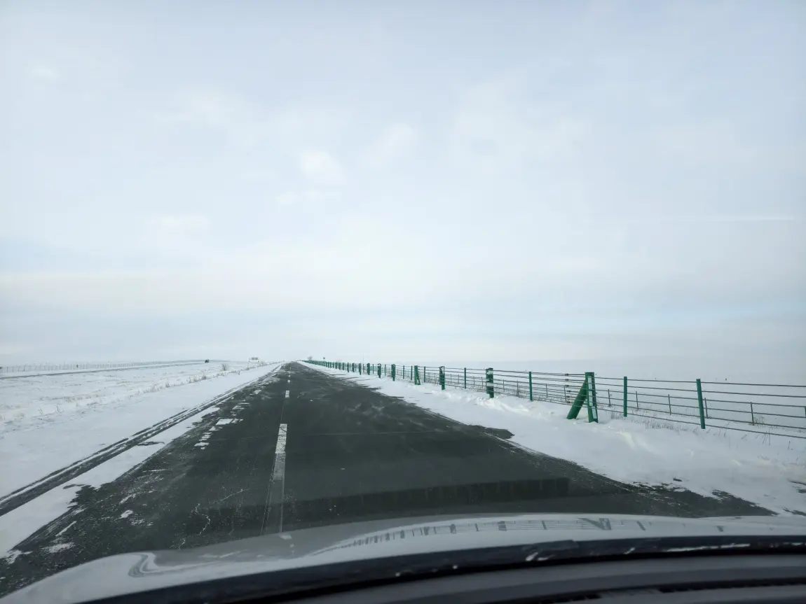 海拉尔~满洲里,途径路段风雪飞扬。和小6打卡5代国门