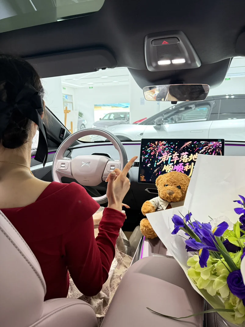 提车小鹏MO3真的非常喜欢,一眼就被它的颜值戳中,选的紫色,神秘感又泛着温柔的自然光感,低趴宽体造型搭配流畅溜背线条,氛围感直接拉满。每处设计都长在我的审美点上。内饰颜色也是我喜欢的紫色,但是浅一点,更有反差