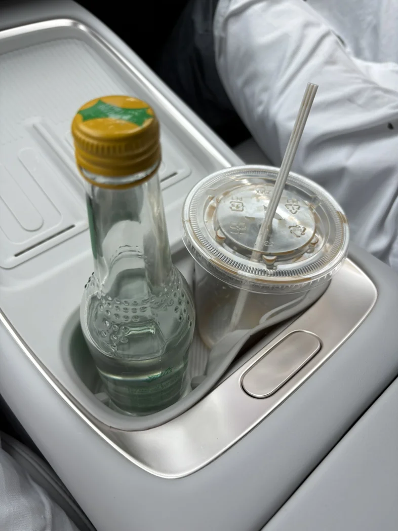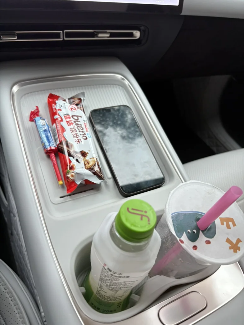 更让我惊喜的是它的实用性,完全满足了我在车内办公、放松的多元需求。车内空间格外宽敞,3008mm的轴距让前后排都舒展自如,就算长时间坐着办公也不会憋屈。中控台下方的隐藏式储物空间、可升降杯架,还有后排中央扶手的折叠小桌板,让放电脑、摆饮料、放零食都井井有条,办公时能保持桌面整洁,放松时随手就能拿到想吃的喝的,特别方便。加上全车出色的静谧性,38分贝的怠速噪音堪比图书馆,关闭大灯后隔绝了外界的喧嚣,窝在Nappa真皮座椅里,一边吃零食喝小酒,一边用14.96英寸的2.5K OLED大屏看剧,20个扬声器的Hi-Fi音响系统还原清晰音效,简直是移动的私人影院。