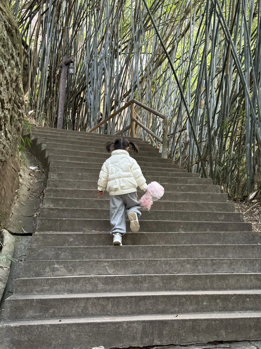 我家小朋友很厉害,一个人坚持爬到山顶了