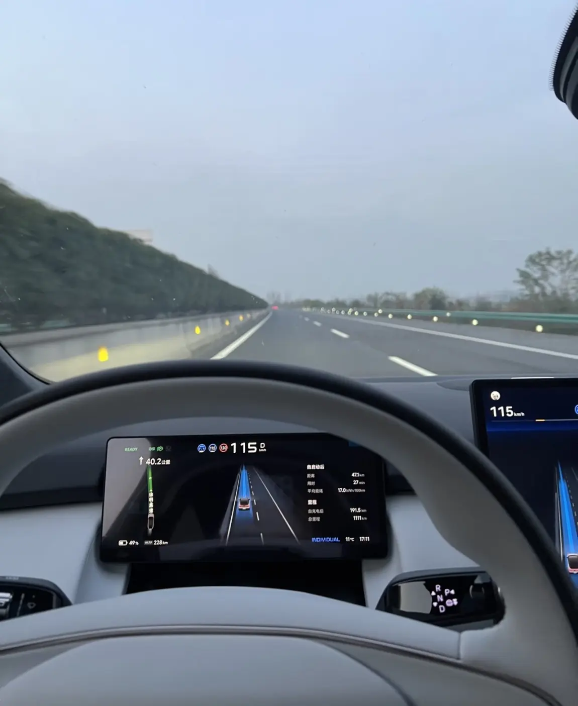 上了高速就直接开启高速NGP,P7+的辅助驾驶真的越用越顺手,面对高速上的车流,变道预判特别精准,过匝道的时候方向盘把控也很稳,我只需要轻轻扶着方向盘,偶尔留意路况就行,原本3小时的车程,感觉一晃眼就到了。中途本来担心续航,结果看了下电量,跑了150公里才掉了20%的电,P7+的续航扎实度真的没话说。