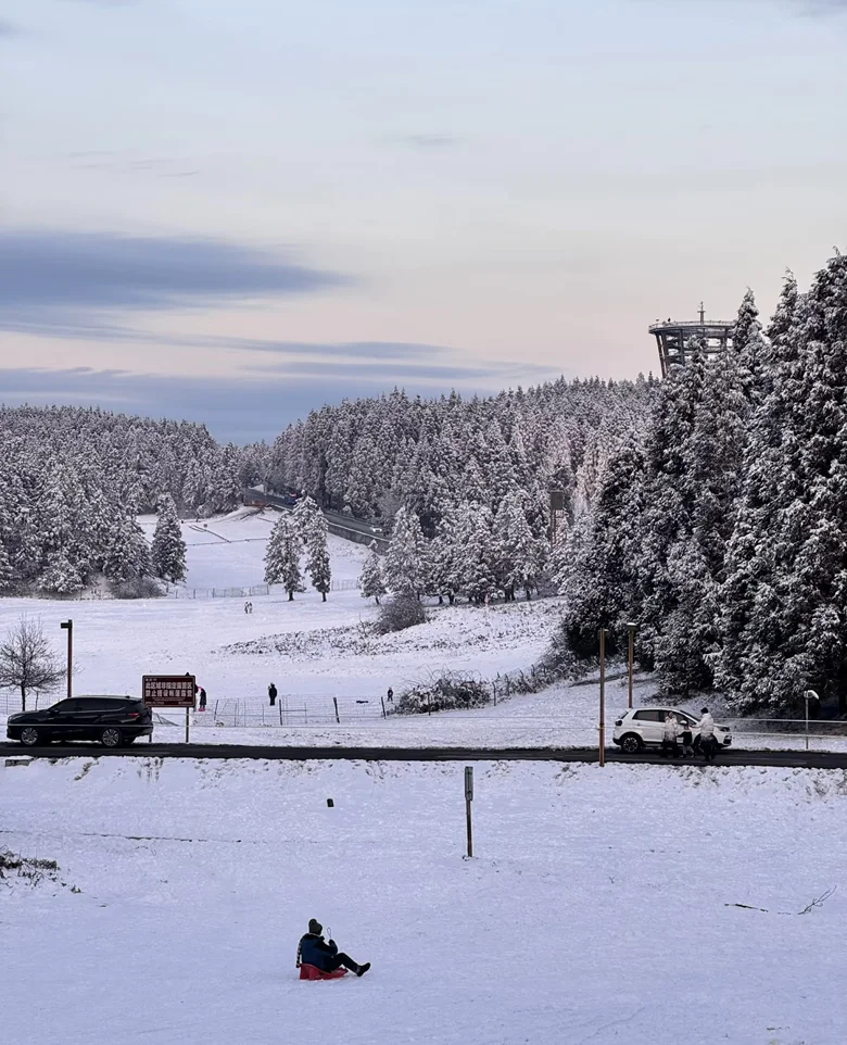 自驾的鹏友记得备防滑链,景区南门有快充桩,露营基地还有免费手机充电口;玩雪装备别在景区买,镇上租赁滑雪板、手套更划算。