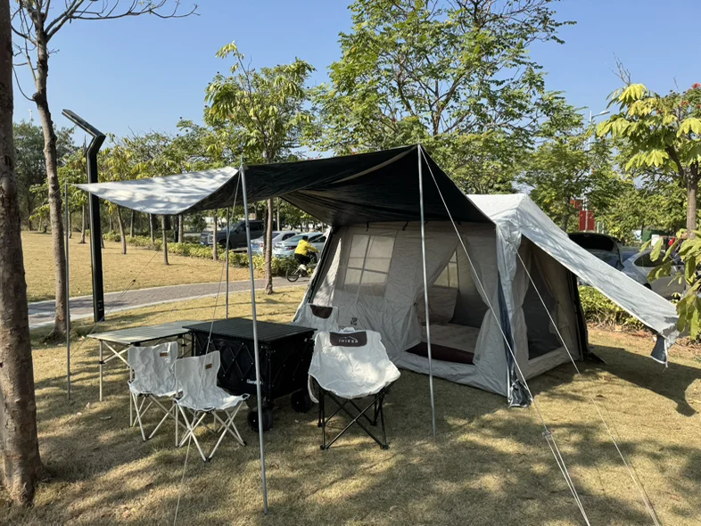 然后就开始搭帐篷了,说实在的一个人搭帐篷太累了,耗时一个半小时加上桌椅那些。