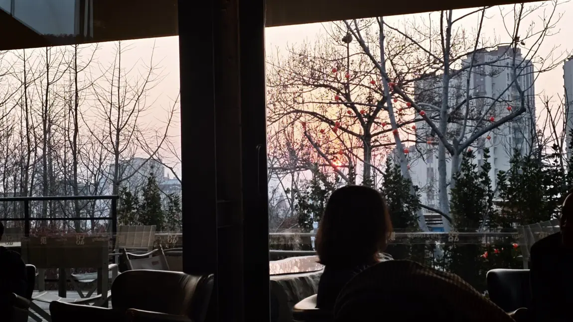 温馨的氛围配合着温暖的空气让人无比惬意,不一会太阳就逐渐转红,进入了落山的节奏里