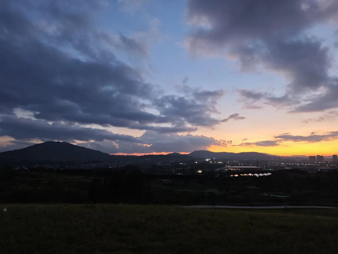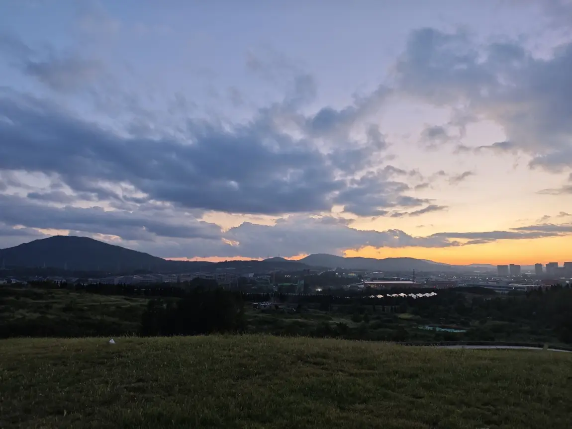 虽然天气很好,但一月初的公园内气温也很低,在车内听着音乐,等着晚霞降临。