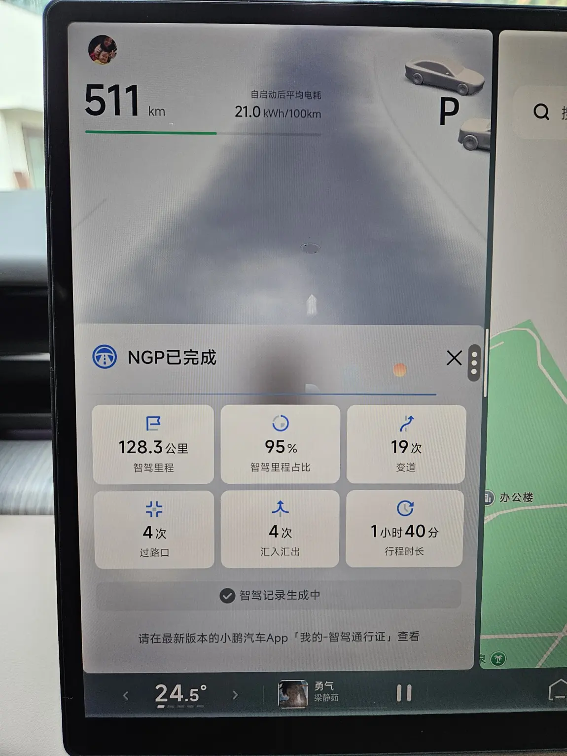 因为刚提车还没上牌,128公里的路接管取卡,一些闸口需要接管,其他时间都放心交给小P了