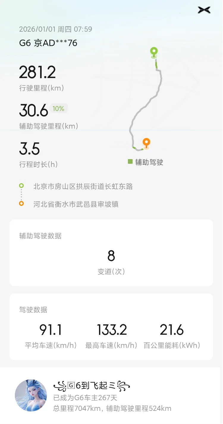 不知不觉已经来到了2026年,小鹏汽车陪我度过了一年时光,新年🉐首次出行,从回家过元旦开始!