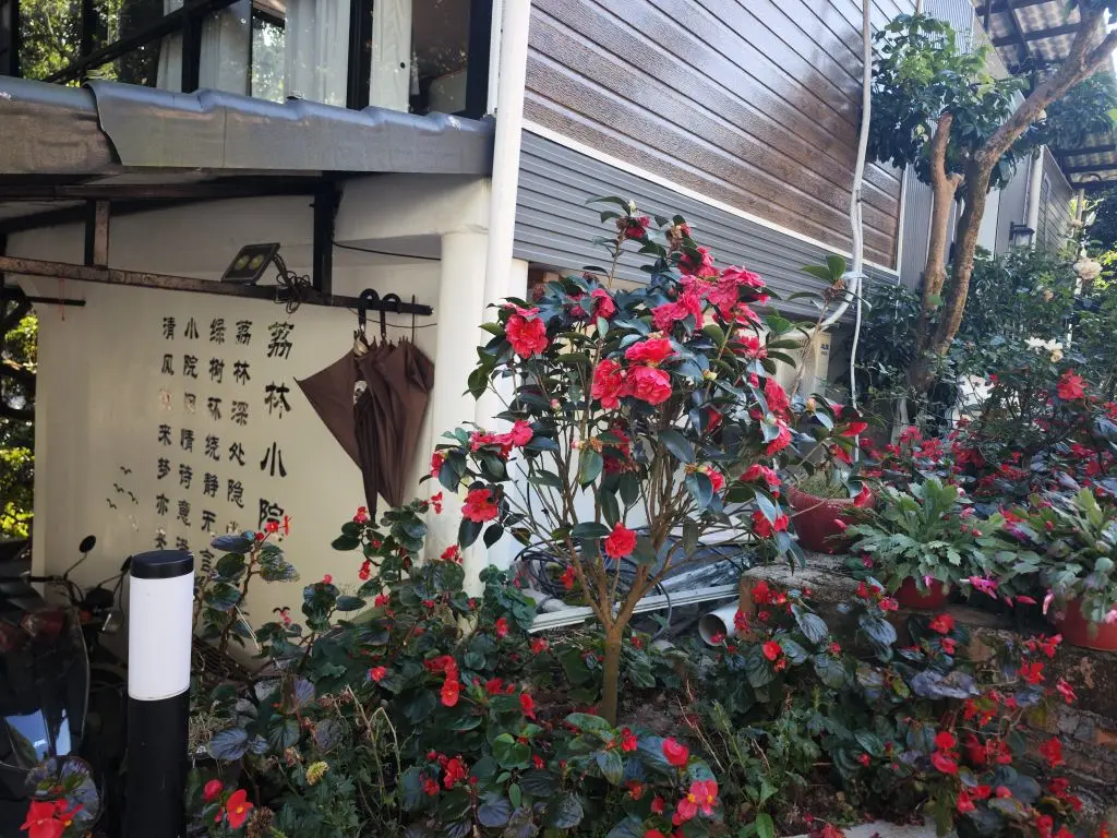 当车轮碾过广州市从化区小海加油站旁的石板路,我知道,这次奔赴的不只是一场旅行,更是藏在青山绿水间的松弛生活。车停在一片浓荫匝地的荔枝林旁,阳光穿过层层叠叠的绿叶,在车身上落下斑驳的光影。抬眼望去,“荔林小院”的字样就嵌在爬满茶花的白墙上,旁边几行小字写着:“荔林深处隐幽院,绿树环绕静无言。小院闲情诗意满,清风徐来梦亦安。” 那一刻,我便明白,这就是我要找的地方。推开院门,石板路两侧的茶花正热烈盛放,艳红的花瓣衬着深绿的叶片,把冬日光景晕染得鲜活又明媚。沿着石阶往上走,木质露台就在荔枝树下铺展开来,长桌与藤椅静静等候,仿佛随时都能摆上一壶热茶,让阳光和清风都成为座上宾。远处的小楼藏在树林间,玻璃外墙反射着蓝天与枝桠,现代感与山野意趣就这样温柔地撞了个满怀。午后的时光,适合沿着院旁的溪流漫步。浅滩上的水流清浅透亮,带着山涧的凉意,漫过圆润的石头,溅起细碎的浪花。再往上走,几株乌桕树正迎来一年里最绚烂的时刻,红橙相间的叶子在蓝天的映衬下,像一团团跳动的火焰,抬手按下快门,就把这一抹冬日的热烈永远定格。站在露台的栏杆旁,我看着眼前的荔枝林与远山,忽然读懂了墙上那句“清风徐来梦亦安”的深意。在荔林小院,不必追赶时间,不必奔赴山海,只需坐在树下,让阳光落在肩头,让茶香漫过舌尖,让溪水的潺潺与鸟鸣的啾啾,都成为治愈身心的背景音。原来最好的旅行,从来不是去看多少风景,而是在某个瞬间,忽然找回了与生活温柔相处的节奏。#新年首次出行#