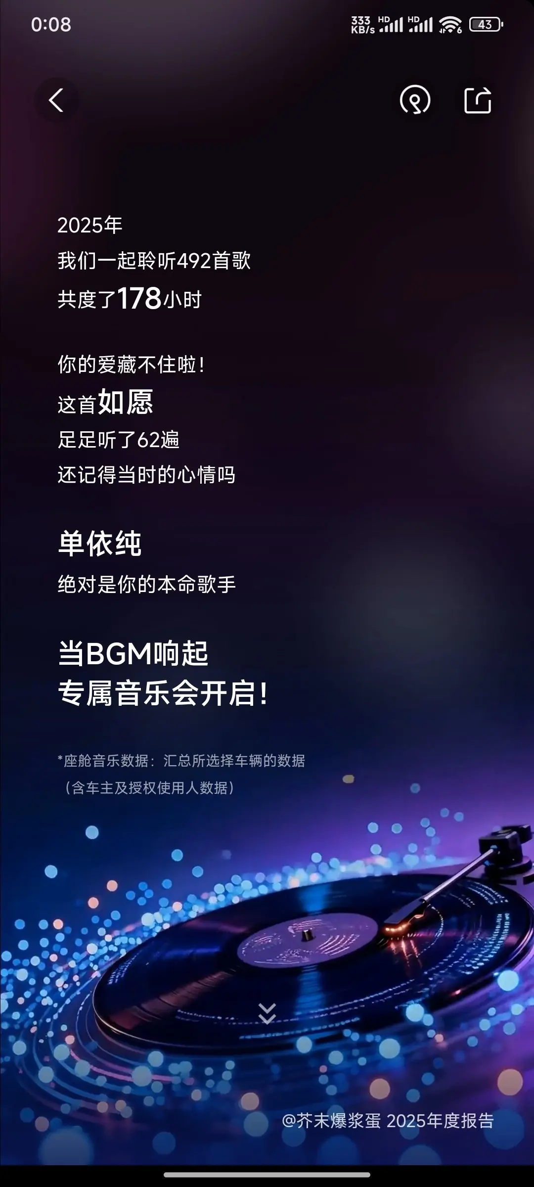 小屁的音色也非常的好,上次用朋友的AirPods听音乐,都感觉蒙着一层雾。还是直接用音响听的爽。小屁跟我说,我去年听的最多的歌是《如愿》我和我的鹏友们今年一定会事事如愿。