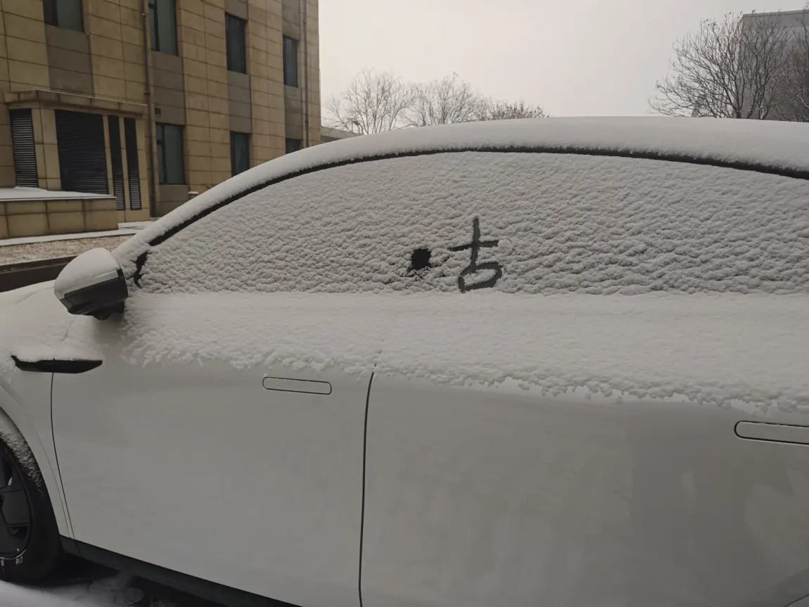 提车当天就遇上了落雪,细碎的雪花落在车顶,把大白车衬得格外可爱。坐进车里,按下空调键,暖意很快包裹全身。