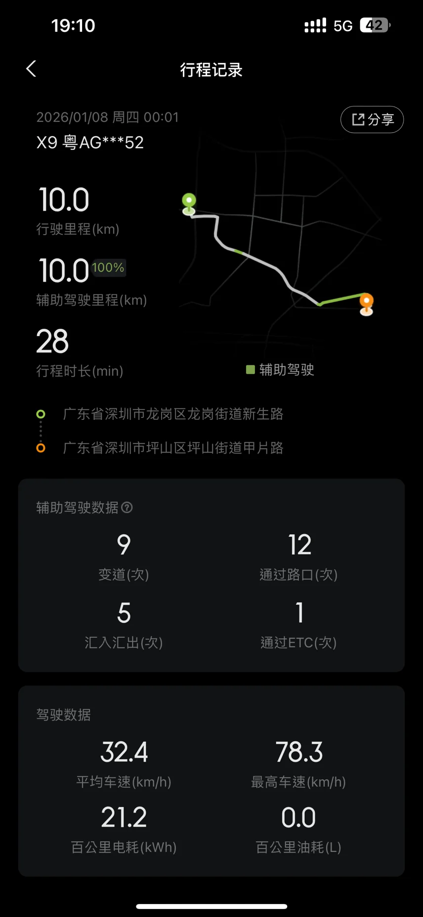 只有回到深圳一般道路时 车太多加上路上的道路线磨损严重,智驾叫我接手之外,其余部分都是小鹏自己完成,让我的旅途中可以放松不少!!