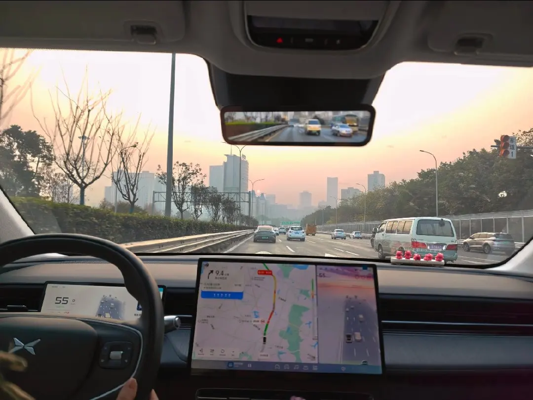 夕阳西下行人归家,打开智能辅助驾驶,刚好能慢悠悠看晚霞染红远天。