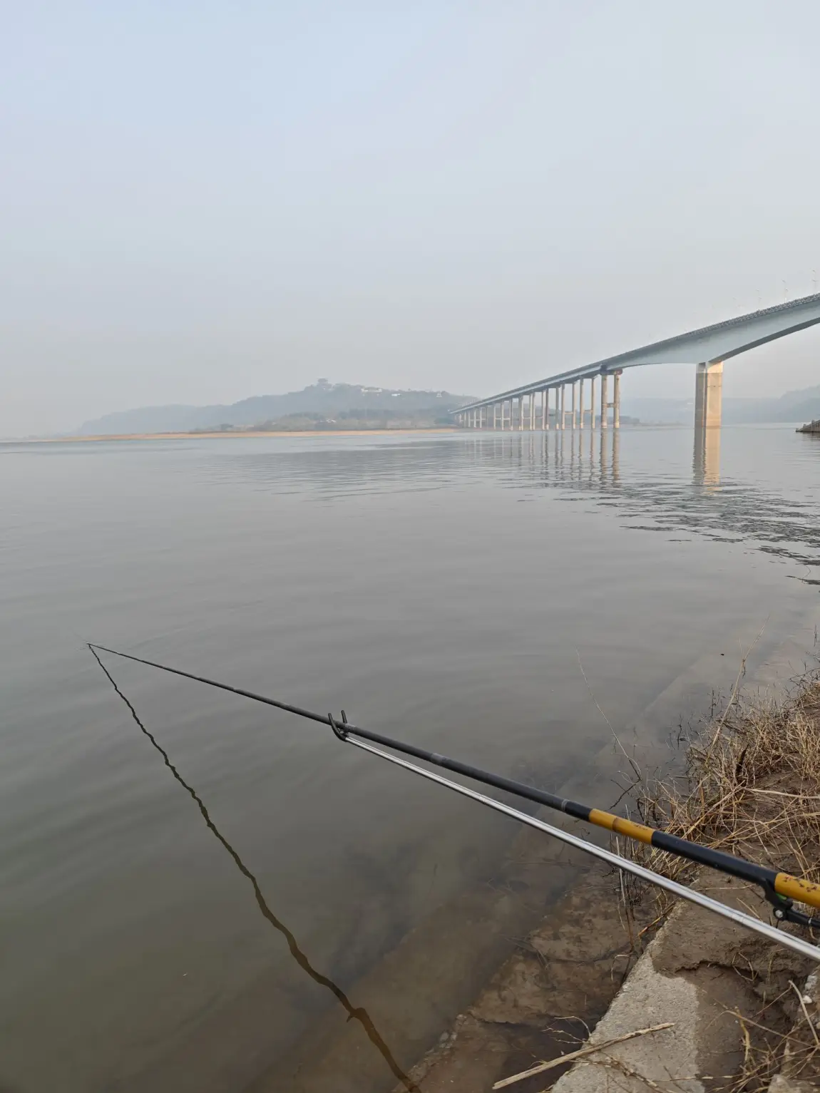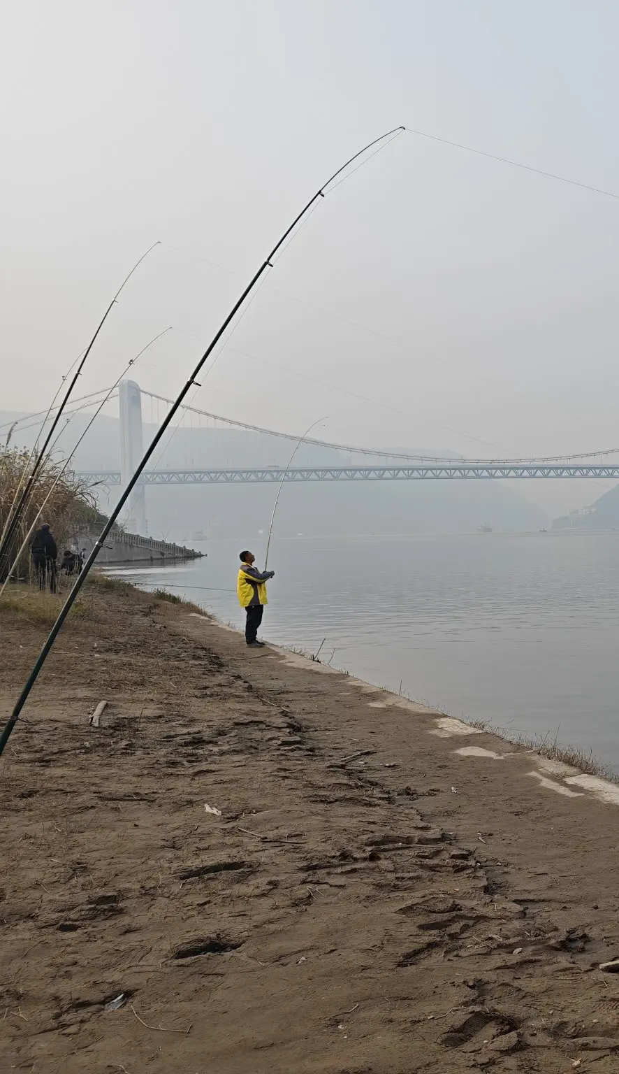 和朋友在江边野钓,我俩守了一天惨成“空军”。