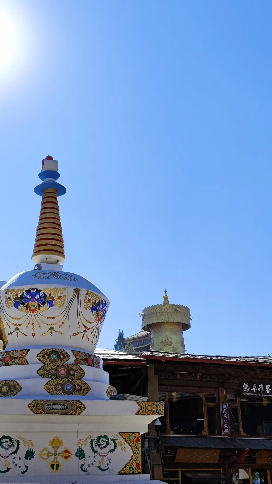 清晨我们向着香格里拉出发。车窗外的风光愈发壮阔,平坦的草甸上散落着牛羊,远处的山峦渐渐染上黛色,214国道的沿途,金沙江如一条碧绿的丝带缠绕山间。午后抵达独克宗古城,打卡大经幡,在龟山公园合力转动世界最大的转经筒,祈福平安顺遂。