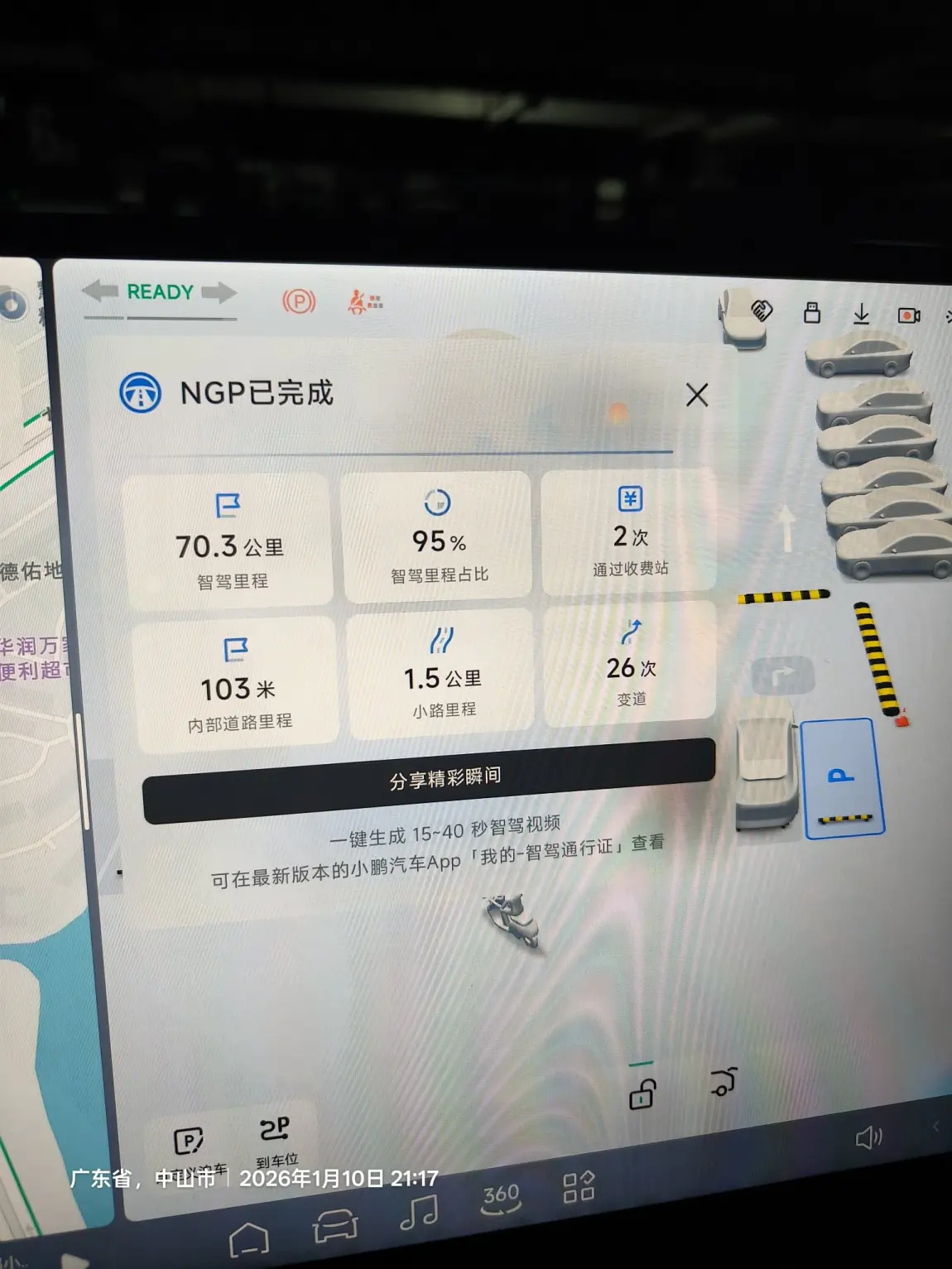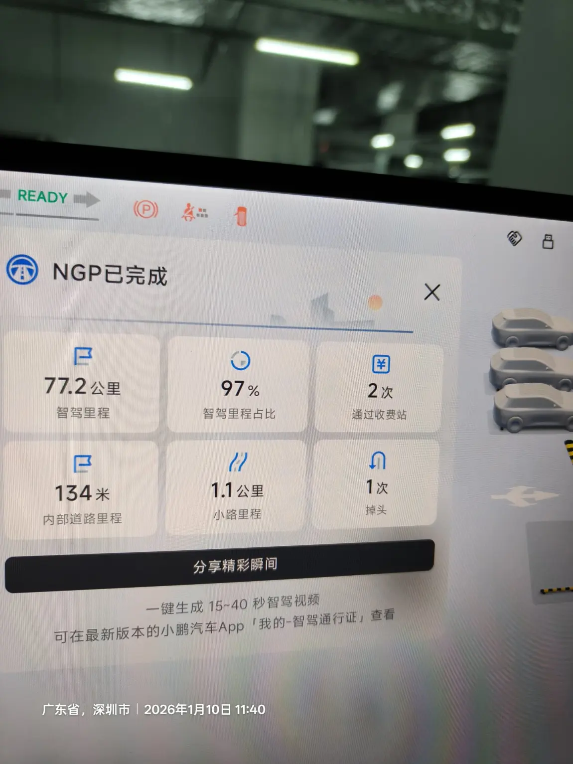 #新年首次出行# 2026年的第一场出行,我开着小鹏G7奔赴深圳科学技术馆,全程智驾体验直接拉满!从中山到深圳的路程里,NGP智驾系统交出了77.2公里智驾里程、97%占比的亮眼成绩,自动变道26次、平稳通过收费站,全程几乎不用手动干预,解放双手的同时,一路的驾驶焦虑也烟消云散。