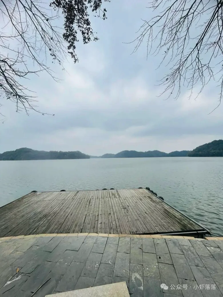 途中,我们路过一个名为“花园山庄”的地方。门口的木牌写着“25元/人”,我们犹豫片刻还是走了进去。原本以为只是个小型的萌宠乐园,没想到里面竟藏着观湖的绝佳位置——一处伸向湖面的木质平台。四周无人,只有风吹过松林的声音。从这里望去,仙女湖的美景尽收眼底,湖水在眼前铺展开来,一直延伸到远山的怀抱。我不禁感叹:这样好的视角,竟没什么人来,美景就这样安静地等待着懂得欣赏的眼睛。