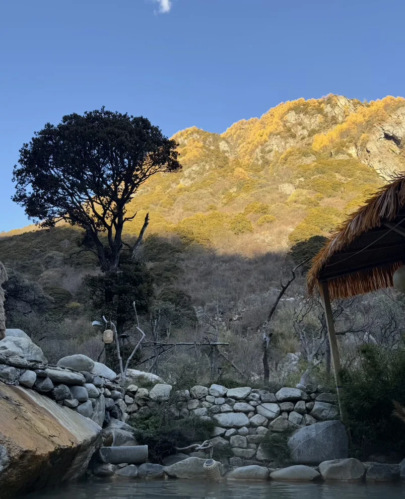 ❄️村里的露天温泉藏在竹林里,泡在暖汤里看雪花飘落在竹叶上,氛围感直接拉满。