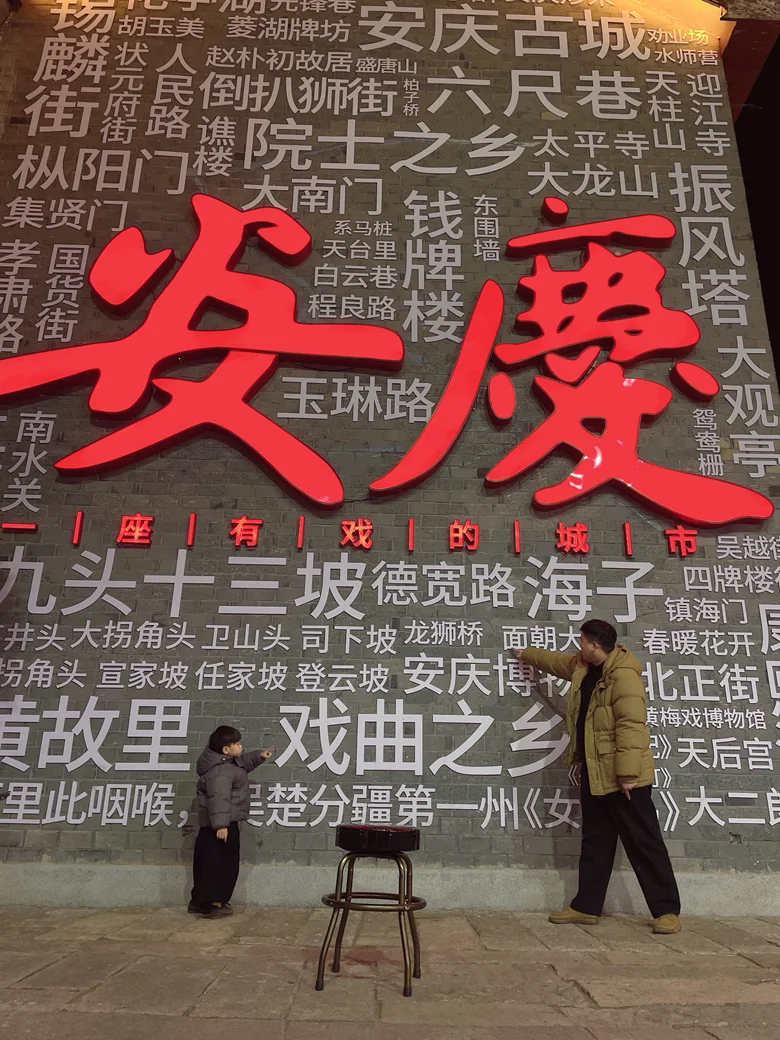 因为没有攻略,傍晚才到达,所以直接搜晚上安庆去哪里,直接导航倒扒狮历史文化街区。方言墙超有意思,娃对着墙上的字念得有模有样,还有黄梅戏现场表演,咿咿呀呀的腔调听着特别有韵味~