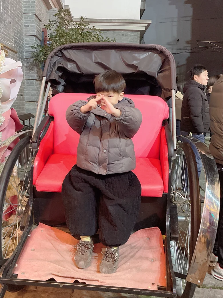 ✅坐黄包车的小快乐:娃第一次坐黄包车,兴奋得比心拍照,老安庆的氛围感一下就出来了~