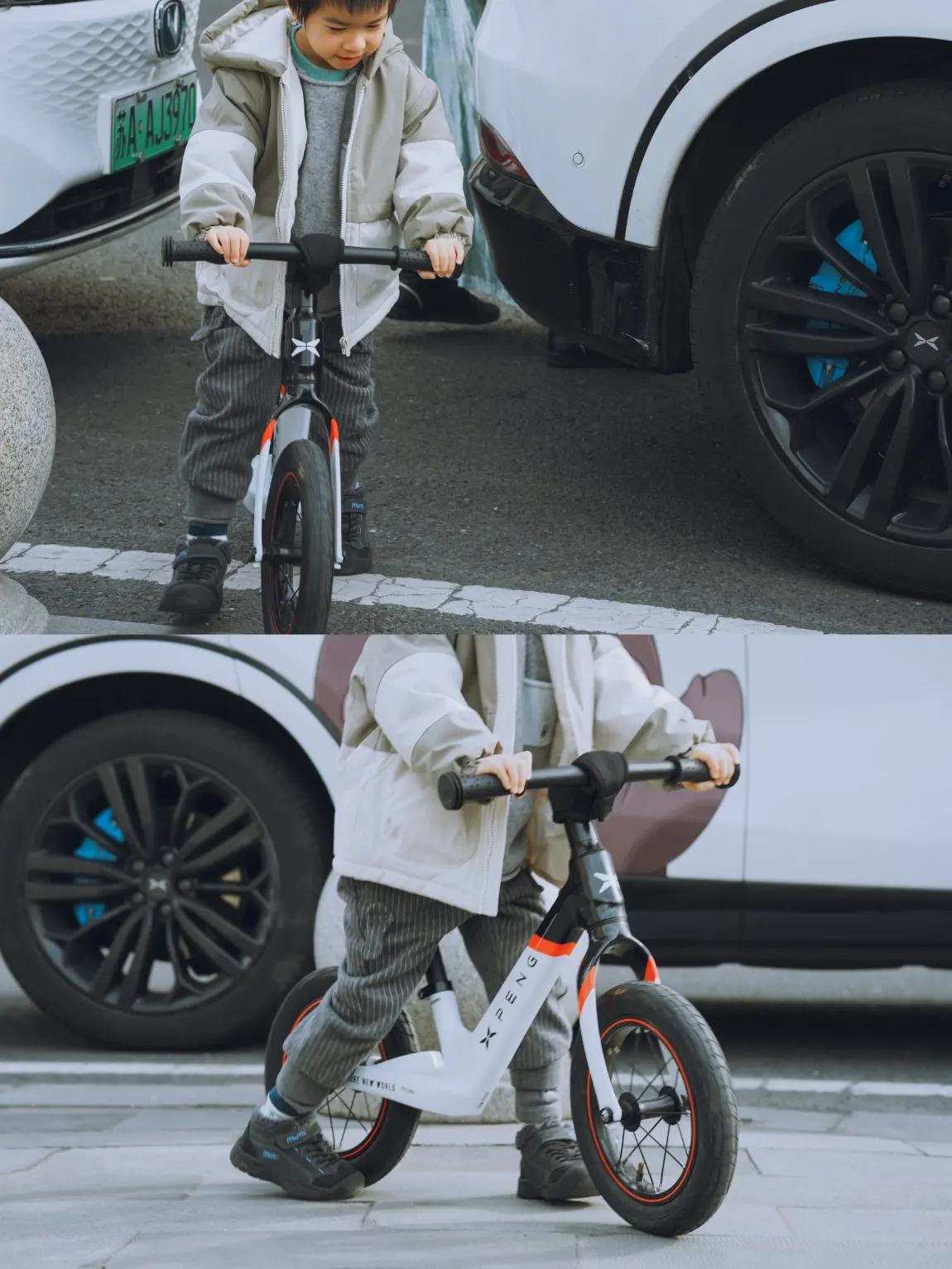 宝宝喜欢滑步车,家里也有一辆小鹏滑步车,今天带出来玩玩~