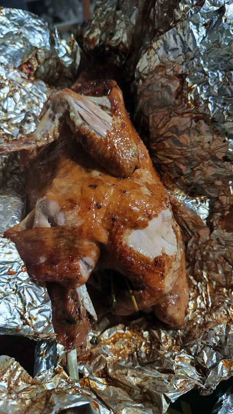 在泥炉中慢焗一小时,铲走泥团敲开锡纸的瞬间,香混着肉香扑鼻而来,肉质鲜嫩爆汁,搭配一起烤的玉米、土豆、番薯,暖乎乎的超适合冬天。
