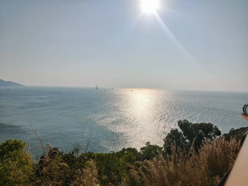 傍晚时分,我决定挑战一下那传说中的一千零八级台阶——通往斧担山蜜月阁的路。起初还觉得轻松,越往上走腿越沉,好在沿途的风景足够治愈。站在山顶的观景台,整个东澳岛的景色尽收眼底。夕阳正缓缓沉入海平面,将天空染成一片绚烂的橘红,海面上波光粼粼,像撒了一把碎金。那一刻,所有的疲惫都化作了满心的震撼,觉得这一千多级台阶走得值了。