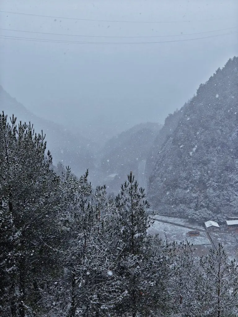 G6来到了山上的住处,天气严寒,我们吃了火锅入睡。第二天一睁眼,哇,浪漫的冬天,悄悄换上了白色华服,给小女孩带来惊喜。