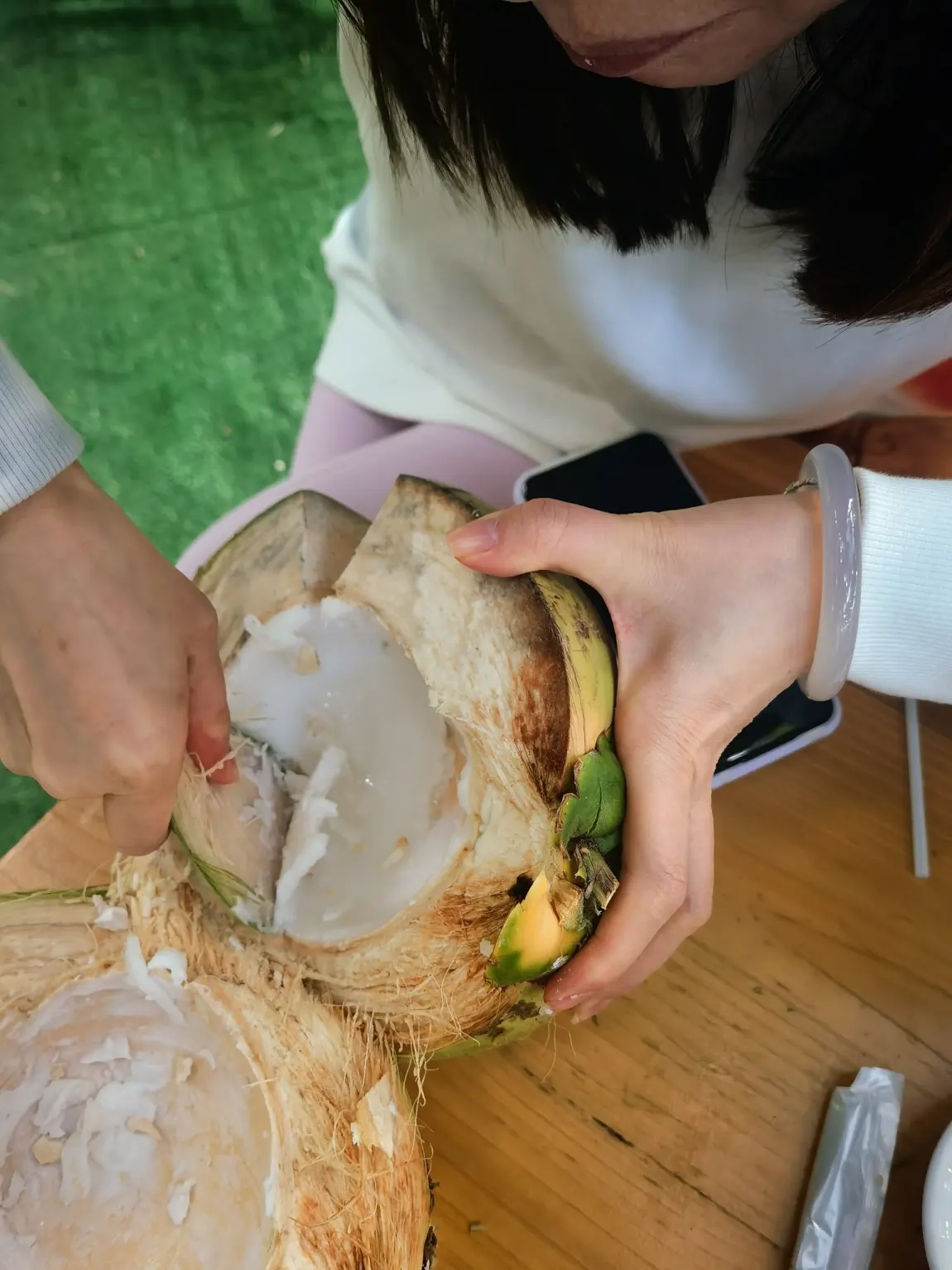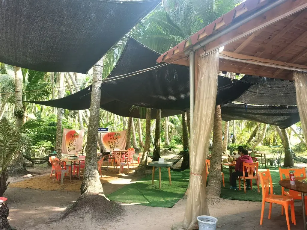第七天一早坐轮渡到海口 小六子上一个船 我们上另一个船 下船后直奔文昌东郊椰林 吃了椰林中农家乐 超赞 吸了五个大椰子 有红椰和青椰 6~8块一个