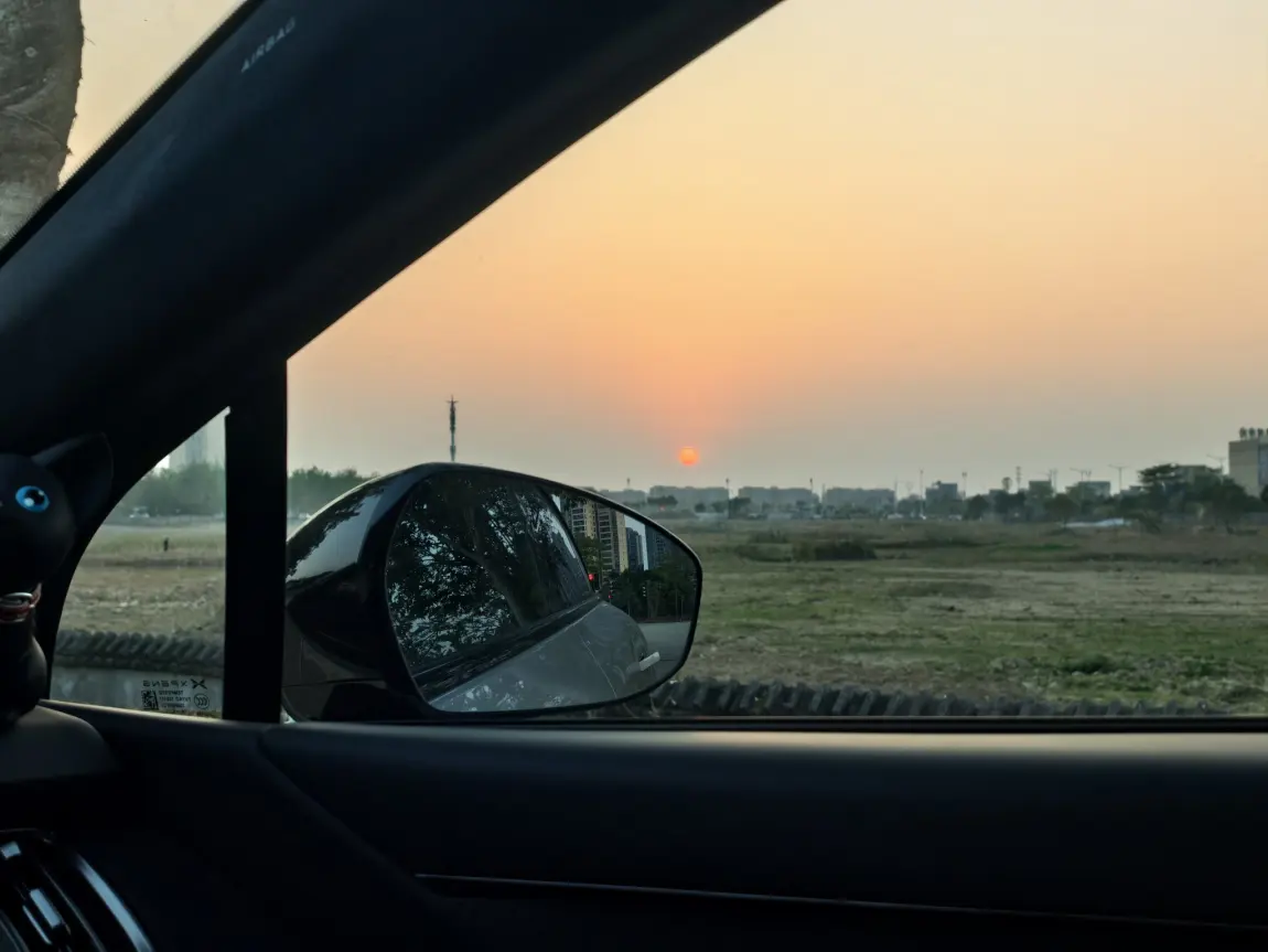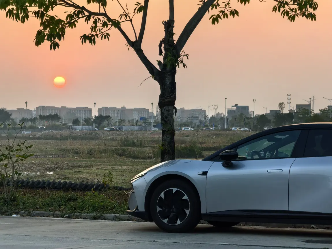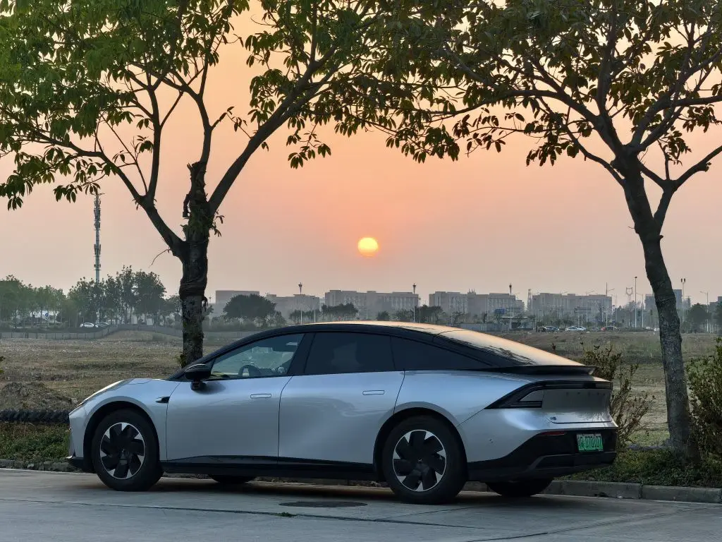 行至半路,瞥见天边的落日正慢慢沉向地平线,橘红色的霞光把天空染得温柔又浪漫。赶紧靠边停下车,让小鹏P7+与这抹晚霞同框,金属车身在落日余晖里泛着柔和的光,快门按下的瞬间,是新年独有的美好定格。