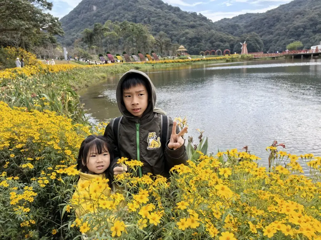 · 天池花海:核心中的核心!驱车直达海拔800米处,竟藏着一片高山湖泊。冬季湖水澄澈如镜,环湖栈道旁的野花依然倔强开放,对岸的水杉林染着焦糖色,倒映在水中宛如油画。孩子们在这里奔跑,我们坐在长椅上,看云从山脊流过。