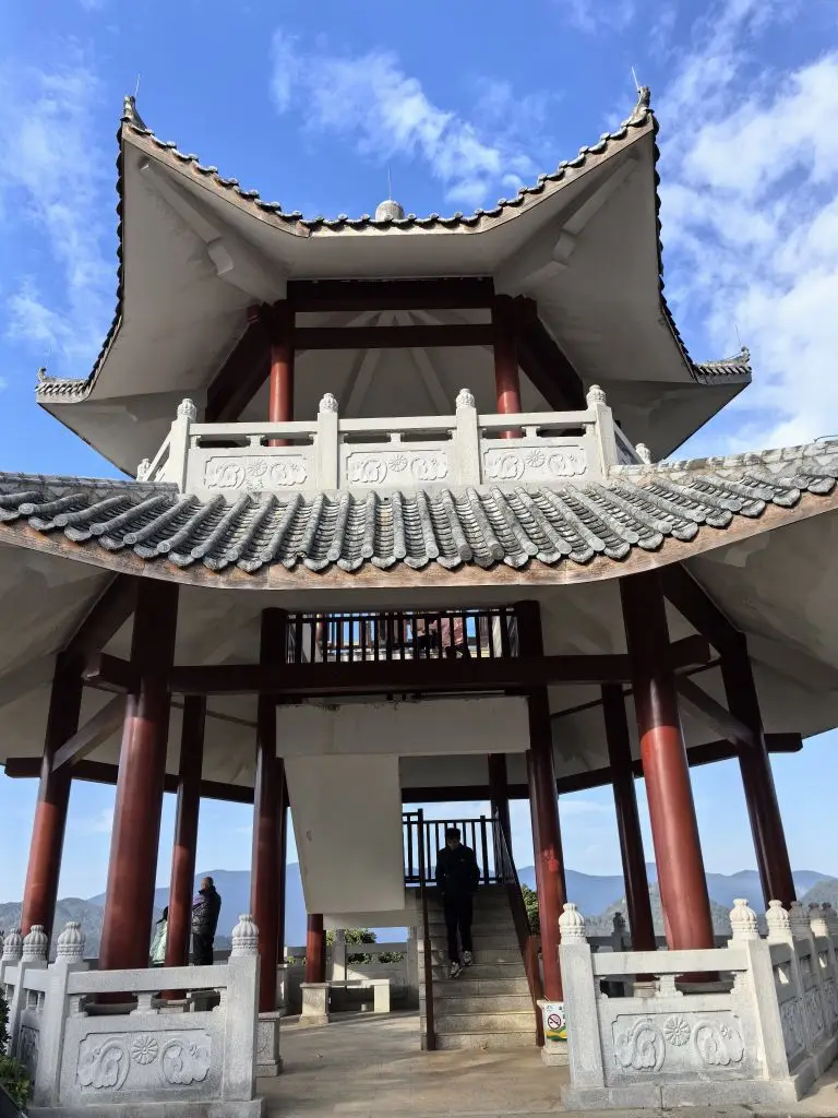 下山弯道处的宝藏农庄!荔枝柴烧鸡外皮焦脆、肉质多汁,孩子们抢着吃。最绝的是屋顶露台——360度无死角环视群山,日落时分层林尽染,风大但值得裹紧外套拍下年度封面照。