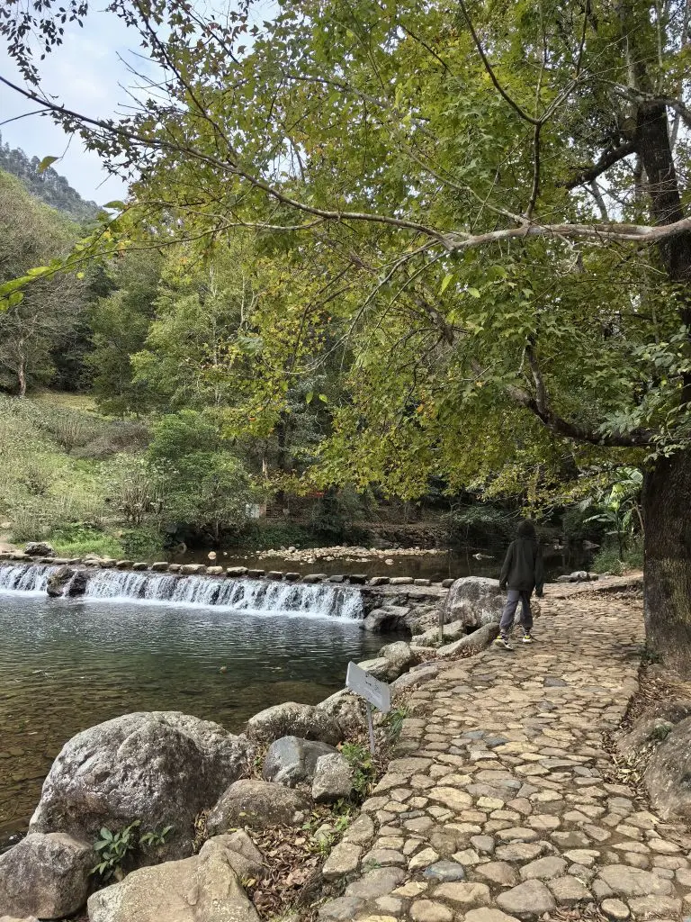 · 石门浣纱:夏季的玩水圣地,冬季化身为白练般的溪流群。清澈的山泉沿着石阶潺潺而下,形成一连串小瀑与清潭。孩子蹲在岸边寻找小鱼,我们则被流水声治愈。