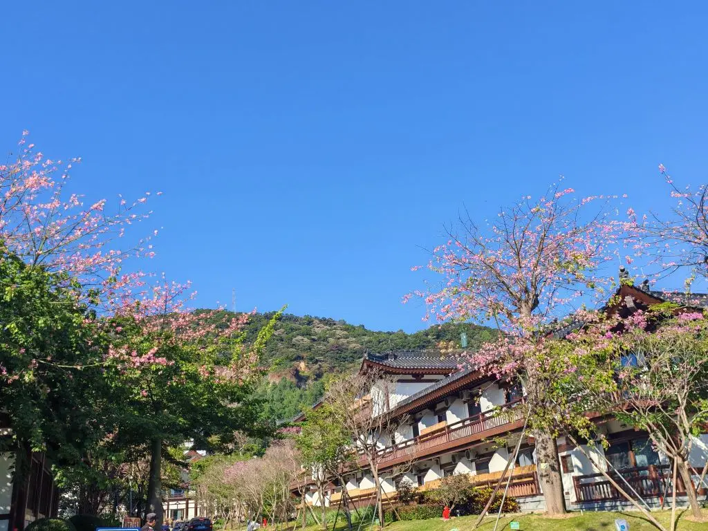 红花点缀着飞檐,为古寺增添了几分节日的喜气。虔诚的香客与缭绕的香火,共同织就一幅祥和的画面。漫步其中,心绪沉淀,感受着这份远离尘嚣的宁静,也为新的一年默默祈愿。