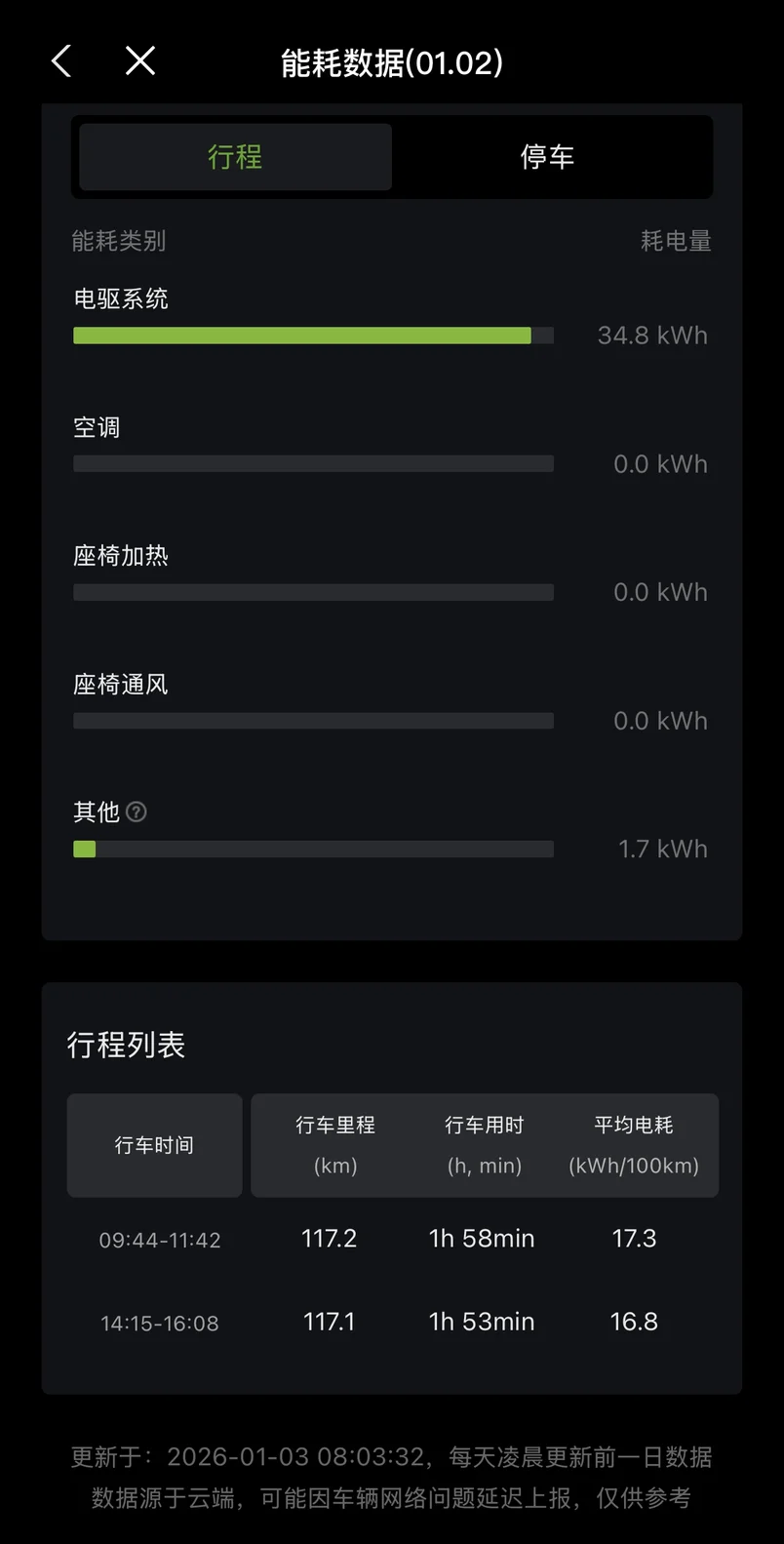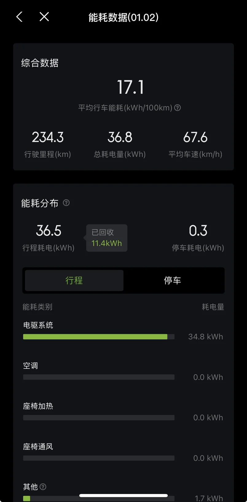 电耗表现也是一如即往的出色,九十点钟不那么冷,空调也不用开,来回平均车速67.6,百公里电耗也只有17度电,可谓省电省钱完美平衡💗
