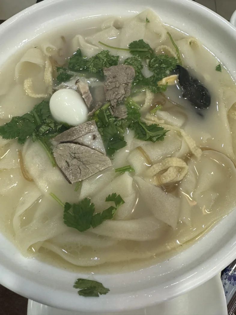 在新乡,我们品尝了当地特色美食:河南烩面:选择了胖东来附近的惠丰阁烩面,这家三十多年的老店分量十足,手工面劲道爽滑,羊肉滋补烩面肉量诚意十足,搭配豆腐丝、粉条等配菜,汤底浓郁醇厚。价格亲民,十几元就能享受一大碗。