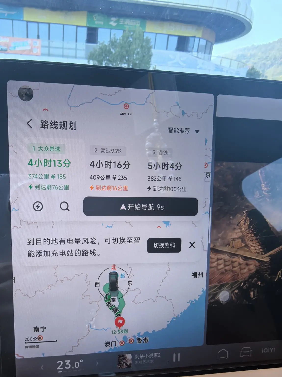 3. 路线规划顺带预热:如果要跑长途,在车机导航里设置好目的地,G9会根据路况规划路线,还能提前预判充电站并自动开启电池预热。到了充电站就能直接快充,10分钟补能超300km,堪比油车补能速度~